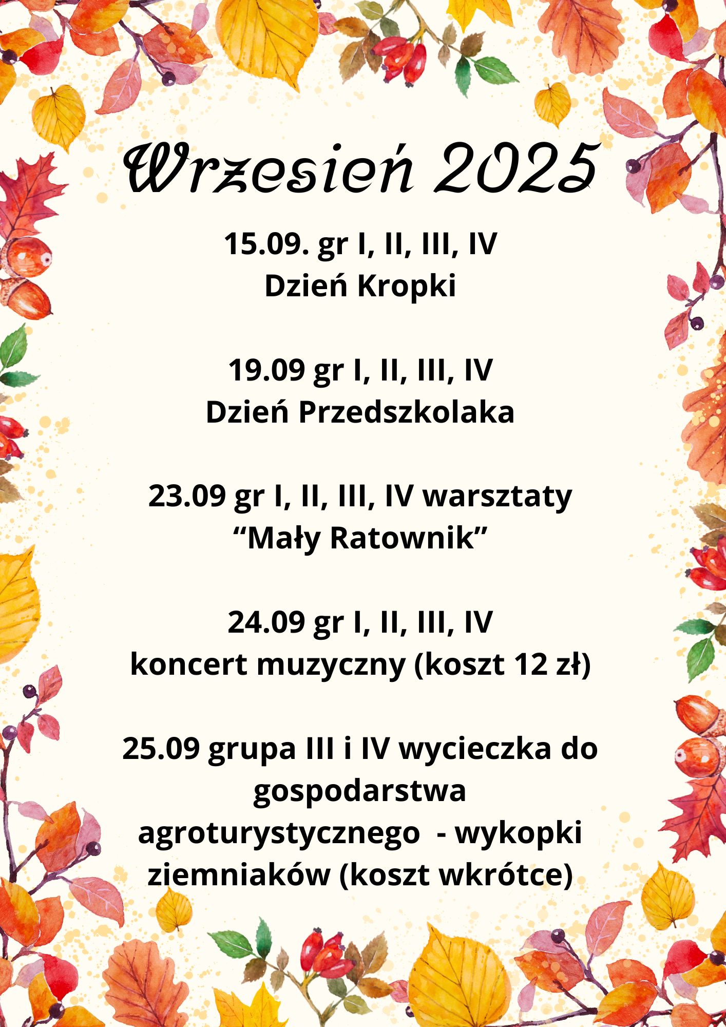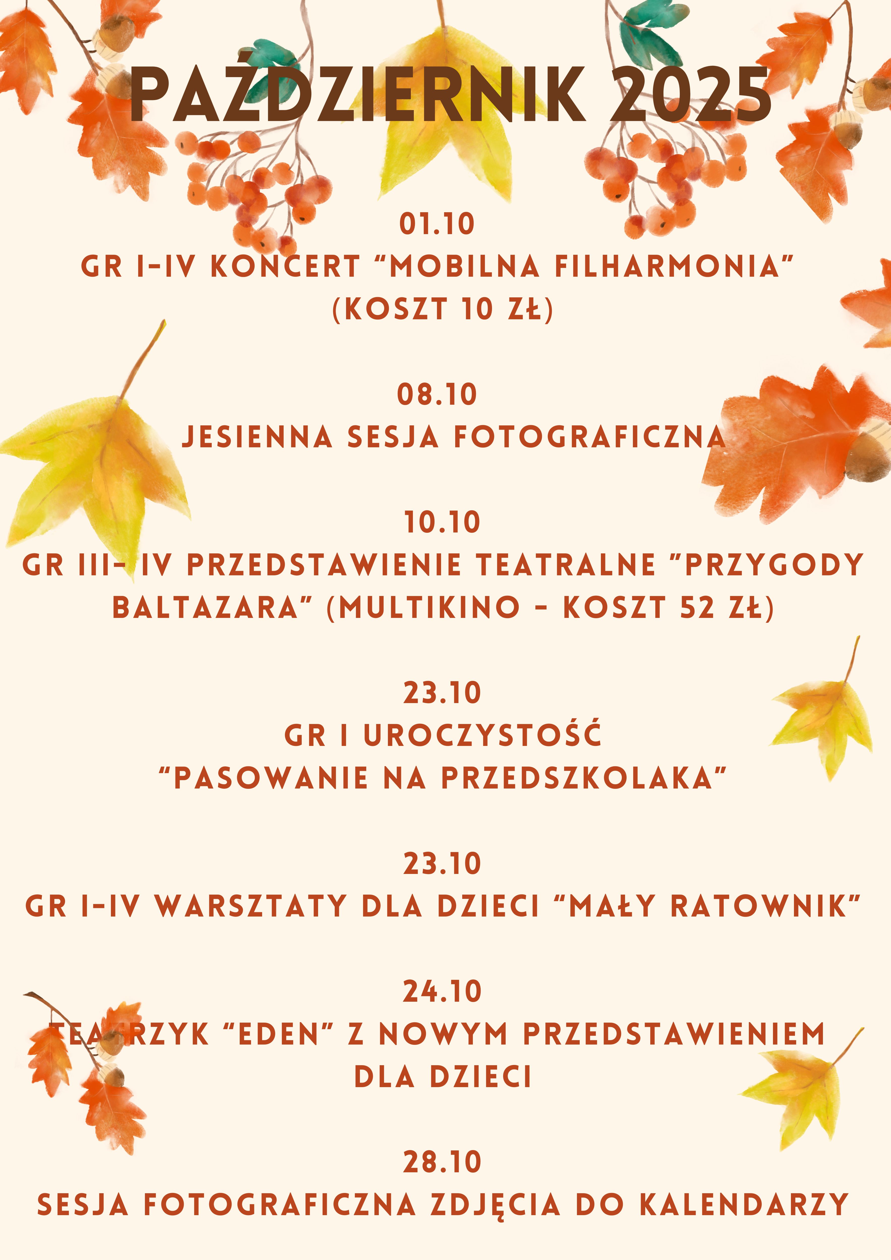 Kalendarium wydarzeń z roku 2025/2026