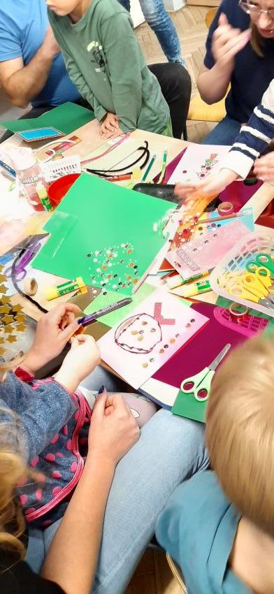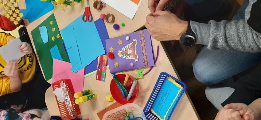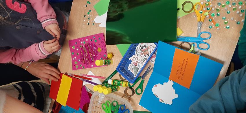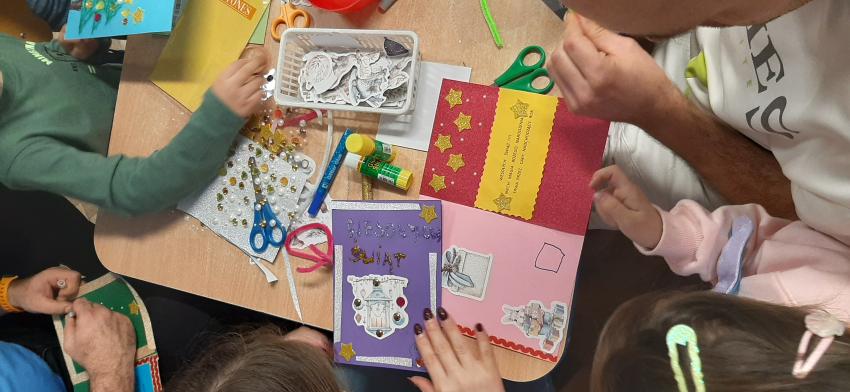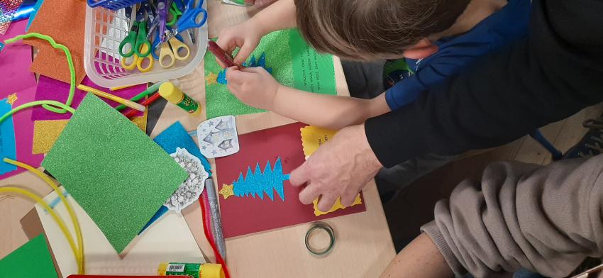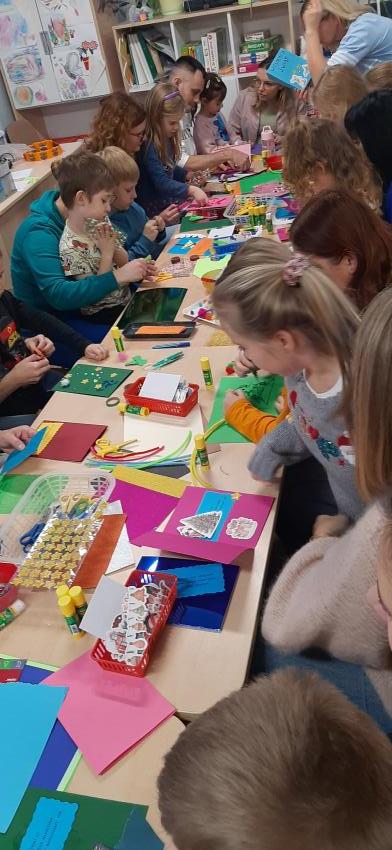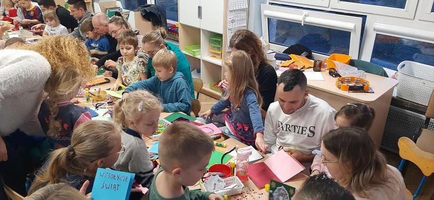 Tygryski - Warsztaty świąteczne z Rodzicami - Kartki dla podopiecznych DPSu